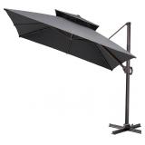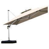 Item Is New And Refundable Only Before The Item Leaves The Building AND If Different Than Described. MSRP: $230 Widely Used】Designed as 10FT patio umbrella square,offset cantilever outdoor umbrella,sun umbrella,market hanging umbrella for garden swimming pool and so on 【High Quality Material】Made by high-strength aluminum pole,UV resistant water-repellent and colorfast fadeless 250/gsm polyester fabric,8 strong umbrella ribs 【Fully Functional】6 Heights to be up and down,360° rotatable in horizontal direction,double top design,increases air flow,ensures product stability,and improves aesthetics 【Technical Parameter】10 FT for the umbrella,9 FT from top to ground,6.8 FT from umbrella edge to ground,3.3FT for cross base