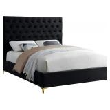 KING Meridian Furniture Cruz Collection Modern | Contemporary Velvet Upholstered Bed with Deep Button Tufting and Complete Sets of Gold and Chrome Legs Included, King, Black
