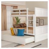 Item Sold As Is. Please Preview! MSRP: $960 INCOMPLETE BOX 1 OF 2 ONLY If you need extra sleeping space or your family love sleepovers, this Full Over Full Bunk Bed with Twin Size Trundle is perfect for your home. The trundle under the bottom bed makes this piece a great option for sleepovers. High-quality, solid pine legs and a strong, durable frame ensures stability and durability for long-term use, and can be separated into two full-size platform bed. Slat kit included so box springs are not required. This bunk bed is designed with a clean silhouette and a hue of elegance. It suits all styles of home decoration, and completes the look of any bedroom. [Easy Conversion]This full-over-full bunk bed be split into two separate beds for complete versatility – especially if you have more than one room to fill. [Built-in design]This bunk bed comes packed with features, including a pullout trundle bed with removable casters. Save space and always be prepared for overnight guests. [The Perfect Option for Family]No matter what style your room is, this bunk bed is a great choice for your family. Comes in three stunning colors, offering you a customized look which will perfectly satisfy while also fitting in with different decoration styles.