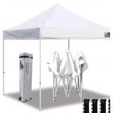 Item Is New And Refundable Only Before The Item Leaves The Building AND If Different Than Described. MSRP: $220 STURDY MATEL FRAME AND TARPAULIN - Canopy metal legs are of 28x28mm, and the top bracket is made of 13x28mm metal. Special thicken metal frame with anti-rust coating. The canopy tarpaulin is made of high density Oxford polyester fiber, with a special silver-plated PU lining, 100% waterproof, UPF 50+, it can block 99% of harmful rays of sunlight. FULL SET OF SUPPORT PARTS - 10 x 10 Ft pop up Canopy Frame, 10 x 10 Ft canopy top tarpaulin, 4 removable oxford cloth side walls, bonus 1 wheeled roller bag, 4 weight bags and 8 tent stakes and 4 ropes. The upgraded style wheeled roller bag is more rugged and durable. EASY TO ASSEMBLE - Only two people are required to easily complete the entire assembly in a few minutes. Take out the canopy frame and top tarpaulin from the bag, place it on ground and unfold it, place the tarpaulin over the frame, then pull it to each corner end fully and extend the legs and it is done. Three different height settings allow you to pick the height which you want, 73inch, 77inch and 81inch. Thumb latch lock system easy to lock and release. SMOOTH PORTABILITY - We bonus a convenient roller bag with heavy duty wheels, which is made of 600D coated PVC fabric, big enough as a storage bag for you to store the canopy when you are not using it. When you go out, you can put it in a vehicle and take it to any place you want. It is very easy to transport.
