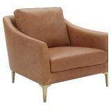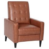 Item Is New And Refundable Only Before The Item Leaves The Building AND If Different Than Described. MSRP: $388 Top: 100% Polyurethane | Backing:60% Polyester/40% Cotton Modern pushback recliner suitable for home or business environments MODERN ELEGANCE: Timeless Cognac brown LeatherSoft upholstery with a button tufted back and vertical side stitching; LeatherSoft is leather and polyurethane for added Softness and Durability TOTAL CONTROL: Push on the arms, your body weight and the backward force you exert control how far you recline for a custom seating experience and holds up to 300 lbs. static weight EASILY ASSEMBLED: One step assembly takes less than 10 minutes PRODUCT MEASUREMENTS: Overall Size: 29"W x 31.5"D x 41.5"H; Seat Size: 21.75"W x 20.5"D x 21"H; Back Size: 21.75"W x 23.5"H; Arm Size: 24"H from floor; 4"H from seat