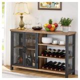 Item Is New And Refundable Only Before The Item Leaves The Building AND If Different Than Described. MSRP: $330 Multi-Functional Bar Cabinet for Home: Display your favorite bottles in minimalist inspired style with this freestanding coffee bar cabinet with storage. Provides you a relaxing bar space to enjoy your time after long day working. It features two mesh doors that open to reveal the stemware holder, as well as ample storage space for spirits, while wine racks on right side allow you to keep favorite vintages close at hand. Humanization Design Wine Rack Cabinet: Removable stemware rack and wine rack makes this wine bar cabinet with storage suitable to be used as buffet sideboard, wine rack table, bar carts for the home or storage cabinet. Define a space to display framed photos, books or decors. Industrial mesh frame give this liquor cabinet bar an updated feel, while a natural wood finish helps it blend with a variety of color palettes. Dimension & Long-Lasting Material: Overall size: 13.39"D x 47"W x 30.12"H. This free-standing wine cabinets for wine bottles and glasses craft from heavy duty metal legs (1.49" thickness) and high quality MDF. To make the liquor cabinet as strong as possible, we use 1.18" thickness chunky tabletop and bottom shelf.