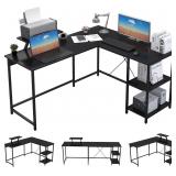 OUTFINE L Shaped Desk Corner Desk Double Computer Desk Home Office Gaming Workstation with Storage Shelves and Monitor Stand