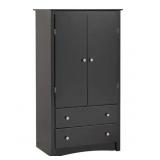 Item Is New And Refundable Only Before The Item Leaves The Building AND If Different Than Described. MSRP: $271 Can't decide what you are planning to store in your bedroom. The Sonoma 2 Door Armoire is versatile enough to accommodate just about anything you choose. Make the cabinet behind the double doors an entertainment center for a small TV, or use the hanging rod to store the clothes that just don't fit in your closet. Two full-size drawers mean this armoire is primed for even more clothing storage. and you can even use the adjustable shelf inside the cabinet as a space for shoes, accessories, or any other everyday items. Don't pick one type of storage furniture; pick this all in one armoire. Coordinate it with other space-saving pieces from the Sonoma Bedroom Collection.Detailed with curved top edges, an arched base panel and solid brushed nickel knobsDrawers run smoothly on metal glides with built-in safety stopsClear lacquered real wood drawer sidesFinished in durable deep black laminateIncludes a tipping restraint