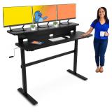 Stand Steady Tranzendesk | 55 Inch Dual Level Standing Desk with Shelf | Easy Crank Height Adjustable Sit to Stand Desk | Stand Up Workstation with Monitor Riser for Home & Office (55in / Black)