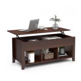 ChooChoo Lift Top Coffee Table with Hidden Storage Open Shelves for Living Room, Brown