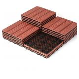 PANDAHOME 22 PCS Wood Plastic Composite Patio Deck Tiles, 12”x12” Interlocking Deck Tiles, Water Resistant for Indoor & Outdoor, 22 sq. ft - Terracotta 3D (22, Red)