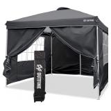 OUTFINE Canopy 10'x10' Pop Up Commercial Instant Gazebo Tent, Fully Waterproof, Outdoor Party Canopies with 4 Removable Zippered Sidewalls, Stakes x8, Ropes x4 (Black, 10x10FT)