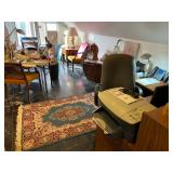MCM Furniture, Bent Walnut Plycraft Telephone Gossip Chair, Signed Listed Artwork, Rugs, Tables, Lamps, Bookcases, Books, Sectionals, Dining room Set, Table, Sideboard, China Cabinet, Statues, Recyners, Tiffany Style Lamps, Pottery, Mirrors, China, Glassware, Clocks, TVs, Plants, Pots, Pans, Tredmill, Keyboard, Wurlitzer Piano, Glass Top Frosted glass Coffee Table, Clothing, Shoes, Luggage, Furs, Bose System, Tons of Sewing Items, Viking Husqvarna From Swede Machines, Singer Ultraclock Machine, Collapsa-a-Form Model 195s Dress Form, Monet Framed Posters, Artist Home with Lots of Art Supplies, Easels, Owl sculpture by Paul Marco, Tiffany Style Wisteria Aft Glass Lamp, Eliane Thioller Vintage 1960’s French Fishing Villange Numbered and signed artwork, Carde Painting and lots more. |
