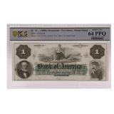 - 1019 1860-S BANK OF AMERICA PROVIDENCE, RHODE ISLAND REMAINDER $1 BANK NOTE PCGS CHOICE UNC 64 PPQ
