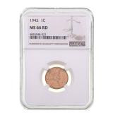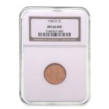 - 1273 1945-P LINCOLN WHEAT CENT NGC MS66 RD