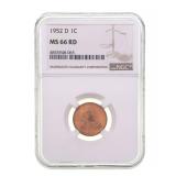 - 1290 1952-D LINCOLN WHEAT CENT NGC MS66 RD