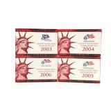 - 1302 LOT OF 4 2003-2006 U.S. MINT SILVER PROOF SETS