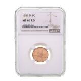 - 1303 1957-D LINCOLN WHEAT CENT NGC MS66 RD