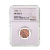 - 1313 1953-P LINCOLN WHEAT CENT NGC MS64 RD