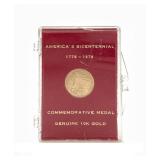 - 1322 10K GOLD AMERICA'S BICENTENNIAL 1776-1976 COMMEMORATIVE MEDAL