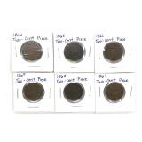 - 1337 LOT OF 6 1864-1869 CONSECUTIVE TWO CENT PIECE COINS