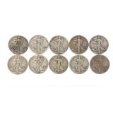 - 1339 LOT OF 10 ASST U.S. WALKING LIBERTY SILVER HALF DO