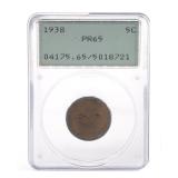 - 1345 1938-P JEFFERSON NICKEL PCGS PR65
