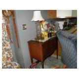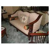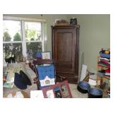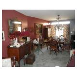 Selling contents of large condo including vintage and antiques. All must go!!! Antique furniture including mahogany frame sofa, mahogany coffee and side tables, mahogany breakfront secretary, assorted side and rocking chairs Double pedestal mahogany dining table with 6 chairs, sideboard and china closet Antique bed, armoire and bedroom pieces Antique chandeliers and lamps, assorted antique mirrors Sectional sofa, several recliners Vintage and antique nesting tables Framed artwork Bricabrac, kitchenware, hospital bed Clothing, shoes, coats, handbags and hats including vintage Linens, curtains and fabric pieces including vintage Costume jewelry Sewing machine, notions and supplies in cabinet.... and more! Nice assortment, don't miss!! |