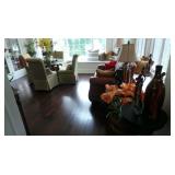 Updated: This is a list of all items bought by new home owner. Master Bedroom:Leather lounge chair,Bedframe,end tables,dresser,make-up desk,2 tall plants. Guest Bedroom: black dresser. 2nd guest bedroom: 2 lamps.Kitchen: chair, 5 stools. Sunroom: glass coffee table,2 glass end tables,2 lamps,2 Plants,asian clock,turkish pot. Piano Room: coach,2 plants,2 end tables,2 leather sofas,clock,plant. Outerroom: green glasss table set,2 cushion sofa,wood end table. Upstairs Foyer: sitting leather bench,plant. Living Room: leather sofa,leather chair,coffee table,2 end tables,2 lamps,outdoor painting,side table. Office: desk, office chair,elephant, tall elephant decor, office lamp small. Reading Room: 3 elephants, 3 leather chairs,bronze table,small elephant,wood ladder,leather sofa,Monet picture. Garage: 2 golf bag sets,scooter,1 helmet,4 tires,baseball bat.Basement:Kegerator,wooden step, clock,game table,train set, leather chair, 6 bar stools,rc car,skinny clock,bronze pot.Basement Bedroom: bed set,2 end tables,dresser. Poolroom: pool tables,Orleans picture,bar microwave. Gym: all contents excluding fan. Outside Pool Area: 2 Patio sets, 2 pots,3 hanging umbrellas, 3 black pots, pool equipment, 6 longe chairs, rocking chair, bar set. Downstairs Pool Room: sofa,2 lamps, 2 end tables,2 chairs, 2 tall plants. 2nd Gargage: basketball hoop, crib. Foyer: 1 bird painting,