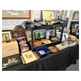 We sell Live in our Gallery at Maryland's Historic Savage Mill more from a fabulous Jewelry Estate to include Gold Necklaces, Gemstone & Diamond Rings, Pins, etc., 2,000 Stainless and Costume Rings, 50 pieces of MIB modern Costume Jewelry including Joan Rivers, Nolan Miller, Turkish Silver Chokers, Necklaces, etc., much Sterling Silver including Goblets, 2 sets Flatware (Corsage, Gorham), Candlesticks, etc., Art, 3 tables full of old Dolls and accessories, Doll Furnishings, Asian Pottery, China, Brass, TeaCups, Table Lamps, Blue and White, Antiques & Collectibles, many box lots, Hess Trucks, Estate Items and more!