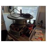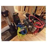 Tools including: (SOME LARGE TOOLS HAVE BEEN SOLD) *Delta Boss Bench Oscillating Spinning Sander *Several Dremel tools *Ultra Quiet portable air compressor with hose *Rockwell Jaw Horse sheet master *Magliner Gemini hand truck *Ryobi 3/8" electric drill *Wolverine grinding jig *Hubbico AC/DC auto charger *Irwin speed bor set *Hitachi hand drill *1/3 hp bench grinder *DeWalt drill *Porter Cable 150 psi pancake compressor *Poulan 3.5 hp electric chain saw *Wagner furno 300 heat gun *DeWalt compact worksite radio *Central Pneumatic professional HVLP spray gun *Delta compound miter saw *Hitachi compound miter saw *Husky portable compressor with hose *Work tables.....more!
