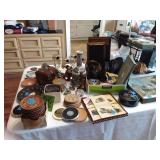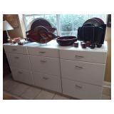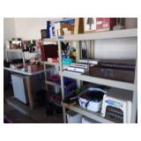 This sale has lots of great wood furniture and storage pieces, Plus there’s some very nice Oriental pieces. Living Room/Dining Room: Loads of cut glass, crystal and pressed glass pieces, serving dishes, Silverplate, Home Decor, Collectible items, wood furniture, storage pieces, Bookcases, Candle Holders/Candles, Wine glasses of all sizes, oriental furniture, artwork and pictures and a Dining Room table. Kitchen: Lots of small appliances such as a blender, KitchenAid Mixer, electric knives, food processor, electric chopper, Nuwave cook top, kitchen scales, loads of pots and pans, bakeware, utensils, coffee mugs, crock pot, corning ware, pyrex, taco holders, white dish set, matching luncheon plates with mugs, lots of glasses and knives. There are white cabinets for storage, wooden serving pieces, kitchen table and 2 kitchen chairs. Den: Wheat pennies, Pokeman cards, tons of Jewelry (necklaces, bracelets, earrings, watches, harmonica and more). 2 matching recliners, lamps, tons of CD's and DVD's, casual chair, floor lamp. CD storage unit. more wooden furniture with great storage, office desk, artwork, oriental furniture and storage cubes, wallets, coin purses, robotic vacuums, upholstered recliner, wall mirror and more. Bedroom 1: Office supplies, Electronics, HP computer, keyboards, paper shredder, Sharp mini component 5 disc system, Samsung speaker system, file cabinets, storage cabinets, drafting tools, HP printer, Canon printer, office desk, office lights, lots of computer bags, desk chair and more. Bedroom 2: Collectible Holiday Barbie Dolls (new in original boxes), toys, games, books, Day bed with trundle bed, wicker storage furniture, tons of pictures, artwork and more. Master: Double Dresser, Lingerie chest, white wicker shelve unit, lots of linens, towels, sheets, tablecloths, artwork, double chest of drawers, double dresser with matching mirror, men's suits and clothing, shoes, lamps, wall decor, home decor, clarinet, Brother sewing machine, oriental decor, vases and much more. Bathroom: Women's clothing, luggage, bathroom items, shoes and travel items. Garage: Tools, Tools and Tools galore! Multiple plastic storage bins on wheels, folding chairs, electric tools, gardening tools, cleaning tools, fans, file cabinets, outdoor chairs, plastic storage bins with lids, baskets, step stools, electric cords, tons of candles, Christmas decor, plastic shelving, lanterns, picture frames, plastic ware, cedar chest and much more.