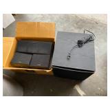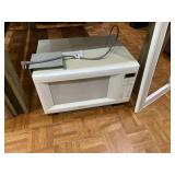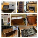 New and used appliances, all in great working condition. Other items for sale include primitive cabinets, trunk and table; sofa, home theater speakers, shelving, and garden fencing.