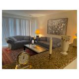 Blue Floral Choice Seating Gallery Sofa Set, Pink Choice Seating Gallery Striped Chairs, Floor Lamp, Coffee Table, Artwork, Dining Room Set, Painting By Frank Ferrante, Mirror blue Porcelain Gilt Lamps, Sm Marble Top Round Table, Console Table, Large Gold Framed Mirror, Cranbury Cornflower Etched glasses, Ashley Kitchen Table w/Chairs, Furs, Purses, Rugs, Bedroom Set, Vintage Bohemian Czech Crystal Cobalt Blue Art Glass Stoppered Liquor Decanter and Five Sherry/Port Glasses, China, GDR Echt Kobalt Fine China, Porcelain Limoges Castel France Dishes, Vintage Kundo Quartz Anniversary Clock Made in Germany, GDR Echt Kobalt Jutta Dish, Cut Crystal, China, Sewing Machine, Lausitz Cut Blue Crystal Vase and Bowl, Tunturi Bike, Clock, Mikasa Hepburn Fine China, Pots, Pans and soo much More. |