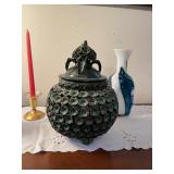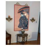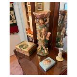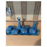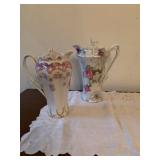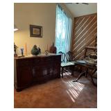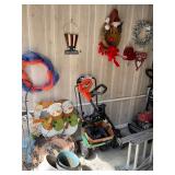 contents of home, patio and garage. the house is crowded and access will be limited. Refrigerator (2), Washer & Dryer, microwave, 1970’s Chrome Curved Etagere by Tricom, pair stripped chairs, plant stand, Baldwin Aerosonic Piano, Asian wood chair with bells, glass top & chrome dinette set, white wicker curio shelf,Duncan Phyfe Dining room set with table, chairs, buffet, and china cabinet, Bedroom chest, dresser with folding mirror panels & night stand, Winged back chair, small writing desk, pair recliners, loveseat, Sewing machine in cabinet, glass & chrome coffee table, 60's mod bar, Large Atomic Orb hanging Chrome floor lamp, Mid Century Modern Triennale Chrome Floor Lamp, Pair Modern Chrome Geometric Table Lamps, White with Brass modern dry bar, potty chair, Africian tribal chair, vanity chair, Wood Black & White cow with utters stool, Microwave cart, Exercise bike, treadmill Avon & Ruby Cape Cod glassware, R S Prussia & Bavarian & English china, Blue & White China, Victorian Mustache cups & shaving mugs and cup & saucers, Crystal stemware, Carnival Glass, Linens, flatware, artwork, African Wood Masks, Cows & more cows collection, Byzantine period pottery pieces, Africian Tribal Masks, Asian art objects, Collection air line spoons & stirsticks, 7 UP cola states can collection, Avon bottles, Decanters, barware, Cake stands, Lily of Valley tea set, Sea Shells, Cows & more cow everything, large black & white cow, Tiffin Carillon crystal with platinum trim, Books: ART, History, pop up children, old sets, vintage magazines & cookbooks, Arts & Craft table Lamp, Wood block paintings, Oil on Canvas paintings, Artist brushes & supplies, sewing notions, small kitchen appliances & cookware, Black pottery & China, Cobalt Blue pottery, Vases, Candles, small art objects Ladies clothes, purses, shoes, Jewelry, Mens shirts, pants & shoes, some are vintage Patio table & chairs, potted plants, Garage with tools, lawnmower, ladders, coolers, Craftsman tool box, usual garage items |