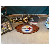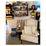 CFA Plycraft Eames Style Lounge Chair, Blue Love Seat, Wing Back Chairs, (2) Antique Marble Top Lamp Tables, Mahogany End Tables w/Drop Sides & Queen Anne Legs, (3) Matching Rose Flower Tiffany Style Stained Glass Table Lamps, Beige Leather Sofa, Love Seat & (2) Recliners, Country Oak Dresser w/Mirror, Armoire & (2) Night Stands, Mahogany Dining Room Table w/Pads, Leaf & Chairs, Jewelry Armoire, Cheval Mirror, Glass Sided Curio Console, Vintage Wall Mounted Decorative Shelving Units, Beautiful Oak Hamper w/Mirrored Top, Matching Coffee & End Tables – All w/Glass Tops, TV/Audio Stand w/Glass Shelves, Pair Mid Century Table Lamps & Other Lamps, Framed Prints Including Thomas Kincade, Bessie Pease Gutman, etc., (5) Various Size Multi Wood Inlay Pictures, Westland Porcelain Wizard Music Box, Partylite Candles – NIB, Mid Century Ice Bucket, Lenox China Including Tweety Bird & Disney Figurines, Ornaments, Bowl & Vase, Copper & Brassware, Large Disney & Warner Bros. Character Collection Including (2) Cookie Jars – (1) NIB, Ornaments, Tree Toppers, Clothing, (2) Disney Sericels, etc., 200+ Boyds Bears, Precious Moments & Cherished Teddie Figurines Most In Original Boxes – $1.00 Each Excluding Large Light Up Figurines & Dolls, Large Collection Porcelain Dolls – Some In Boxes – Some Danbury Mint, (4) Danbury Mint Very Large Lighted Boyds Bears Multi Figure Statues, Many Pieces Stemware Including Lenox Champagne Flutes, Large Service Noritake “Willowbrook” Dinnerware Set w/Serving Pieces, Corelle Dinnerware Set, Henkel Knife Set, (2) Sets Flatware Including Vintage Rogers Silver Plate & Gold Plated In Box, Kitchen Aid Bakeware, Kitchen Aid Mixer & Other Small Appliances, Pots & Pans, Panasonic Microwave, Spritzes, Sprays & Lotions, Men’s Leather Motorcycle Jacket, Vicence Stainless Steel Men’s Watch w/14k Bezel, Collectible Belt Buckles, Books Including Complete Set Of (6) DUNE Hardbacks, Collection Of Dungeons & Dragons, Star Trek New Voyages Paperbacks In Box, World Of Krystonia England Figurines, Many Board Games Including Star Trek, Sealed Star Wars Monopoly Collector’s Edition, etc., Vintage A-1 & AE-1 Canon SLR Cameras – As Found, Odd Lenses & Accessories, 45’s, DVD’s, CD’s, VHS, Electronics Including (2) Flat Screen TV’s, Casio Electric Keyboard, Boom Box, DVD Player, Lexmark Printer, Dell Laptop, Unimaginable Amount Of Holiday – Mostly QualityChristmas Including Royal China Holly Dinnerware Set w/Serving Pieces, Lenox & Waterford Table Linens, Tree Toppers, Many Hallmark In Original Boxes, Figural Pieces, etc., Home Health Care Including Electric Twin Hospital Bed w/Hand Crank, Adult Diapers, (2) Wheel Chairs, Hoyer Lift w/Sling, etc., Hand & Power Tools Including Craftsman Radial Arm Saw, Craftsman Free Standing Workbench w/Drawers, Oak Handrails & Bannisters, 1996 Olympic Centennial Pins In Case, Massive Amount Of Pittsburgh Sports Memorabilia – Mostly Steeler’s – Some Penguins Including Jerseys, Limited Edition Super Bowl XL Team Autographed Framed Print, Wood Arm Chair, (2) Footballs – (1) Autographed By Chuck Noll w/COA, Danbury Mint Snowman, Throws, Ornaments, Neon Lamp, Framed Monopoly Gameboard Autographed By Jerome Bettis, Many Framed Pieces Of Wall Art Including Hines Ward, Troy Polamalu, Ben Roethlisberger, etc., Local Artist Karl Saderlund Autographed Print, Steeler Baby Figurines, Drinking Glass Tumblers, Books & Magazines, Unusual Football Theme Chess Set w/Porcelain Board