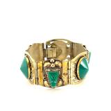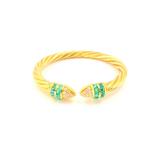 18K Yellow Gold European Bangle Bracelet with 20 Green Emeralds and 24 Diamond Melee Stones