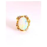 Designer 18K Yellow Gold Custom Ring with Large Fire Opal Center Stone and Diamonds