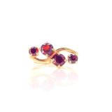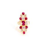 18K Yellow Gold Cocktail Ring with Diamonds and Rubies