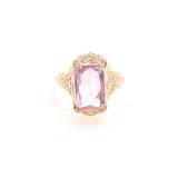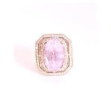 14K White Gold Lady's Cocktail Ring with Kunzite Center Stone and Diamonds