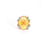 18K White Gold Yellow Topaz Cocktail Ring with Emeralds and Diamonds