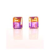 14K Yellow Gold Rectangle Cut Purple and Yellow Topaz Earrings