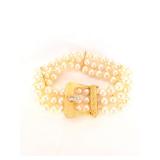 Vintage 3 Strand Pearl Bracelet with 14K Yellow Gold and Diamond Buckle