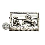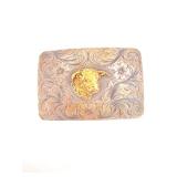 Vintage Sunset Trails Sterling Silver Wester Belt Buckle with 10K Gold Bull
