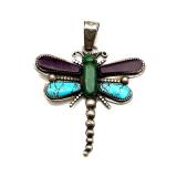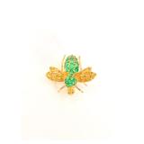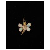 14K Yellow Gold Dragonfly Pendant with Pear Cut Fire Opals, Diamonds and 2 Green Emeralds