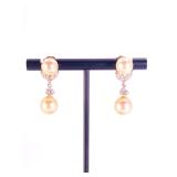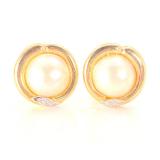 14K Yellow Gold Mobe Pearl and Diamond Melee Earrings