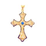 Vintage 14k Yellow Gold Cross Pendant with Blue Sapphire Center Stone