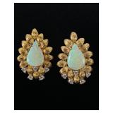 14K Yellow Gold Earrings with Oval Cut Fire Opals and Diamonds