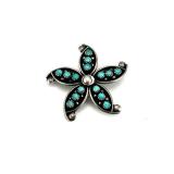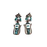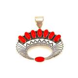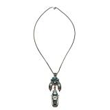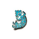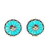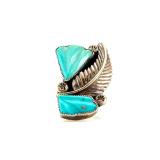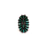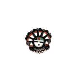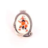 1970’s Native American Zuni Inlaid Mud Man Silver Ring with Coral and Turquoise