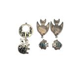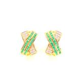Pair of 18K Yellow Gold, Emerald, And Diamond Cross Earrings