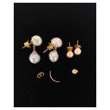 Grouping of pair of pearl stud earrings, 2 loose pearls, and 4 earrings clasps Condition: Good
