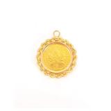 1991 $5 Canadian Maple Leaf 1/10oz. Gold Coin Pendant with 14K gold bezel
