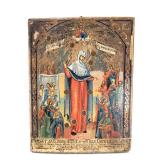19th Century Religious Russian Icon Original Oil on Wood Art