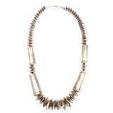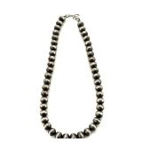 Vintage Native American Navajo Silver Tapered Hollow Beaded Necklace